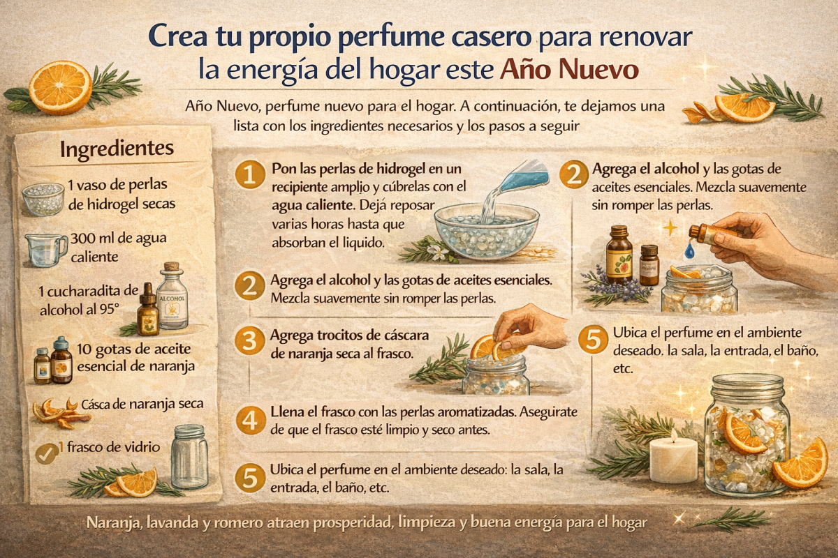 Preparar tu propio perfume casero no es solo una forma de ambientar tu casa: es una manera de tomar control del espacio, aportar tu energía personal y comenzar el año con una vibra fresca, natural y positiva.